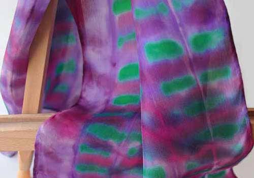 Images: Patterned scarves (top). Watercolour on paper, part of a batik on silk.